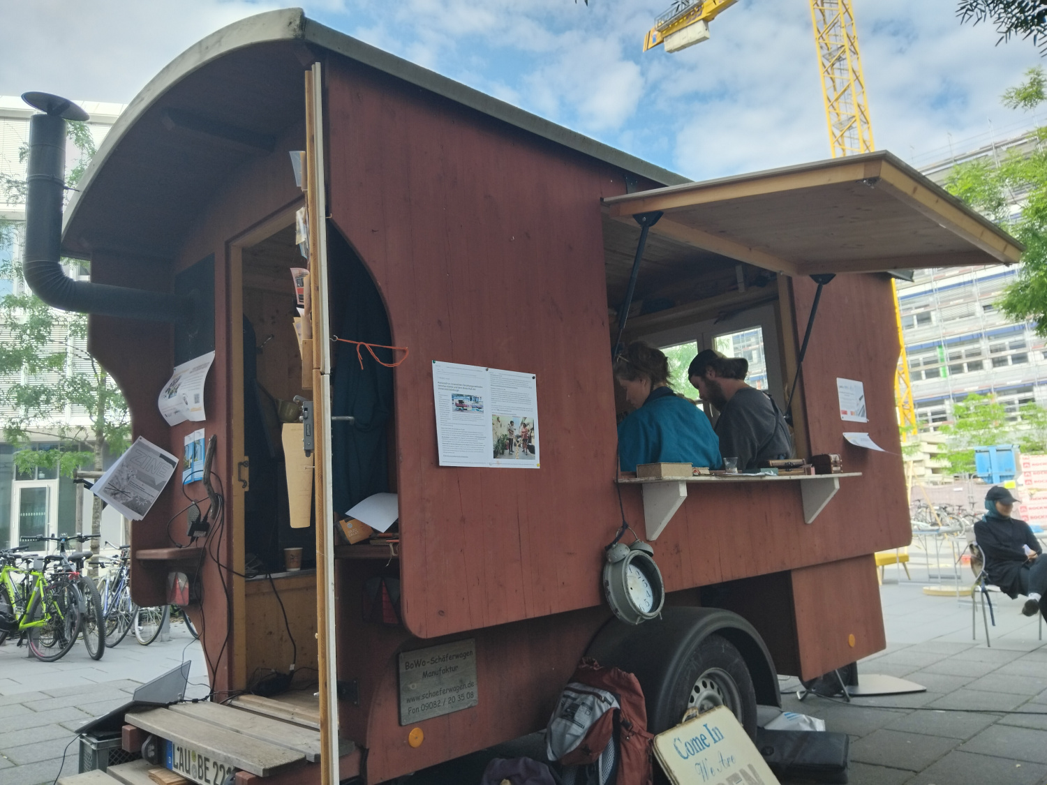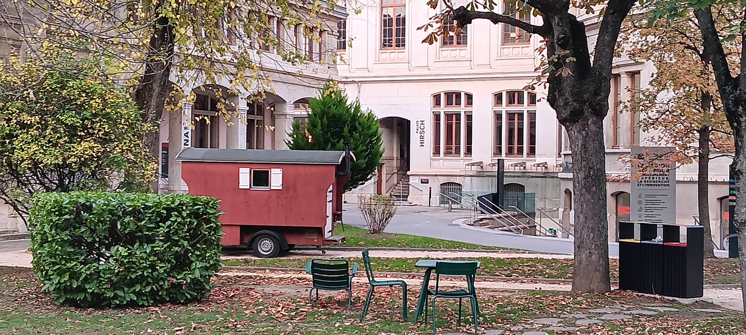 La roulotte de la Rêv’othèque, en déplacement lors de colloques et journées d’étude en Europe cette année: Prague, Fribourg, Edinburgh, Frankfurt, Dijon.